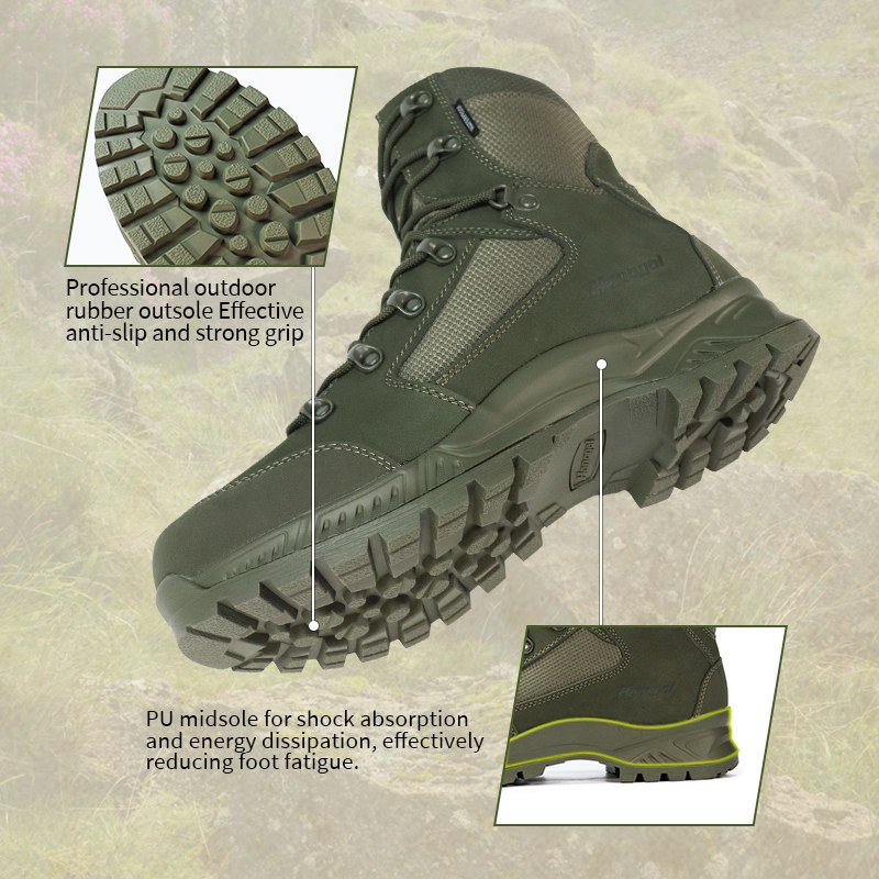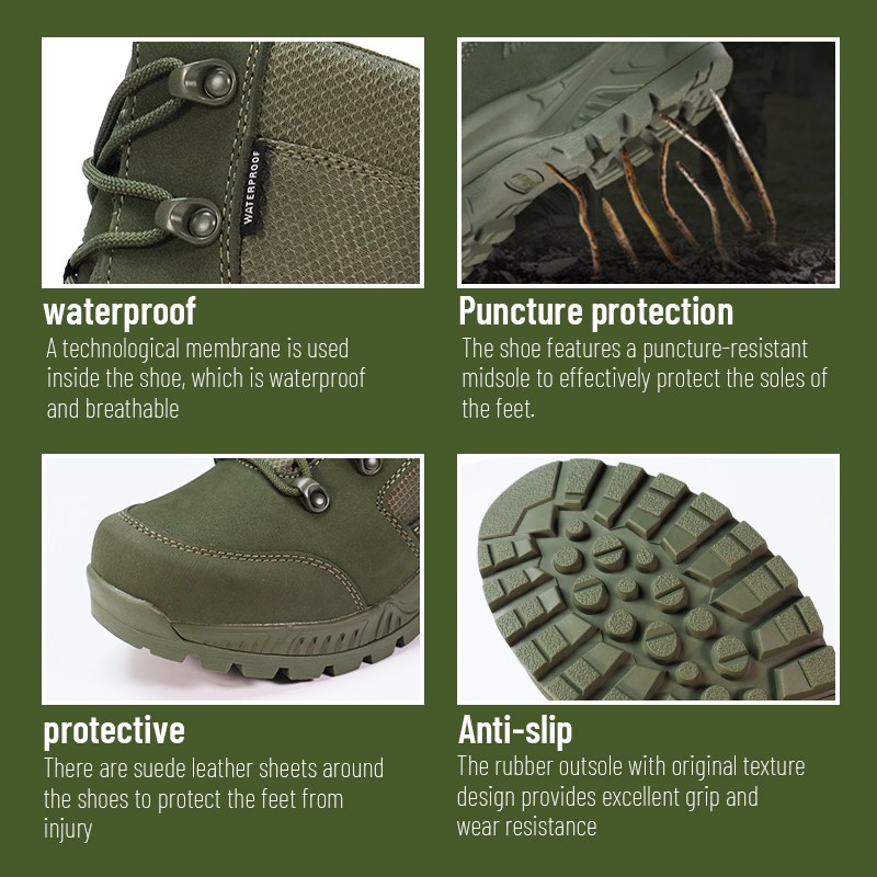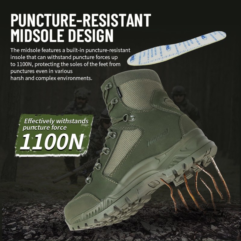 Ruw terrein. Verborgen gevaren. Onvoorspelbaar terrein. De lekbestendige waterdichte gevechtslaarzen zijn gemaakt voor de momenten waarop je het je niet kunt veroorloven om naar beneden te kijken en je zorgen te maken. Ontworpen met een lekbestendige tussenzool die spijkers, glas en scherp vuil tegenhoudt, plus volledige waterdichte bescherming die ervoor zorgt dat je door natte omstandigheden kunt bewegen. Stuur ons een aanvraag voor meer informatie.