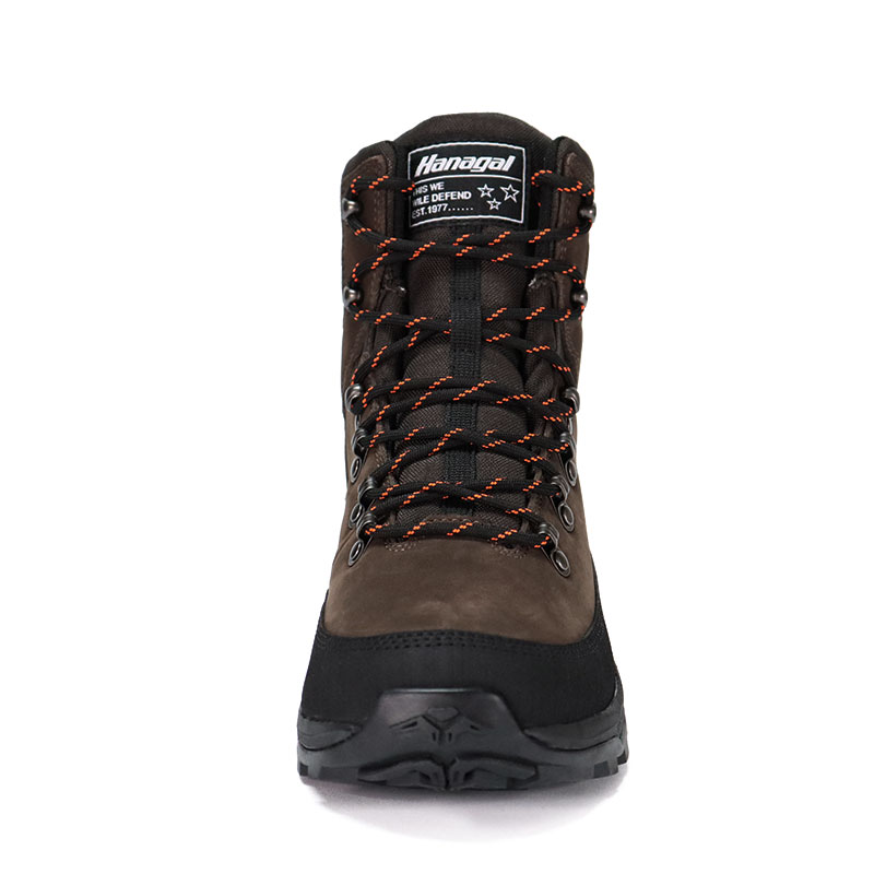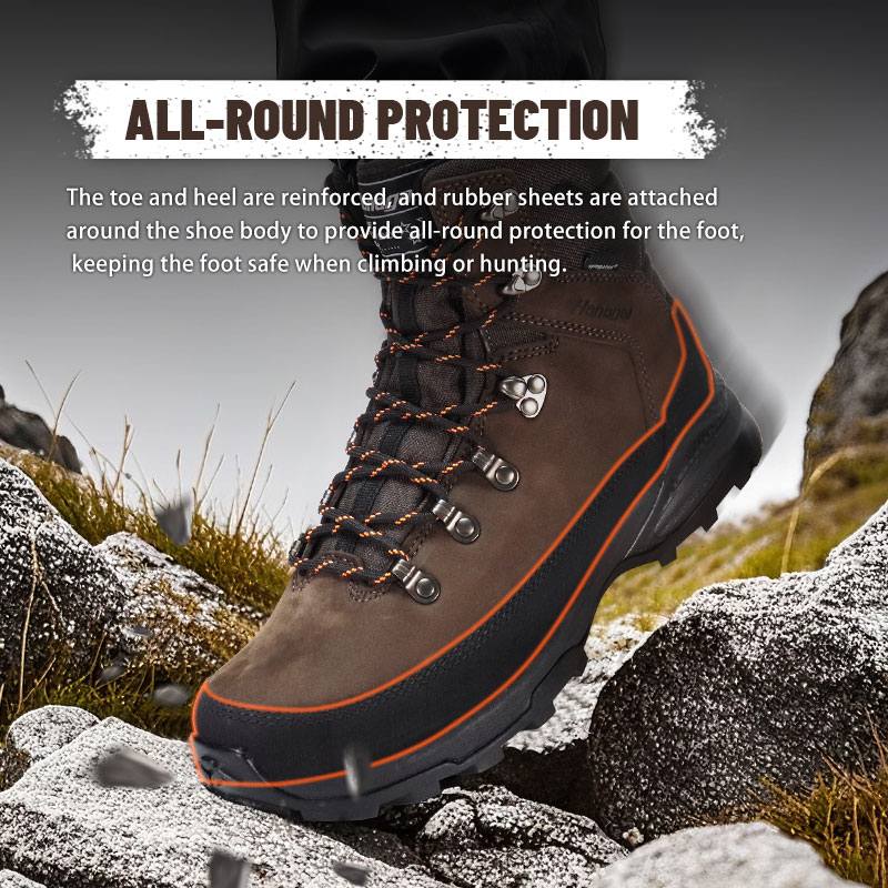 De teen en hiel zijn versterkt en rubberen platen zijn rond het schoenlichaam bevestigd om de voet rondom te beschermen en de voet veilig te houden tijdens het klimmen of jagen.