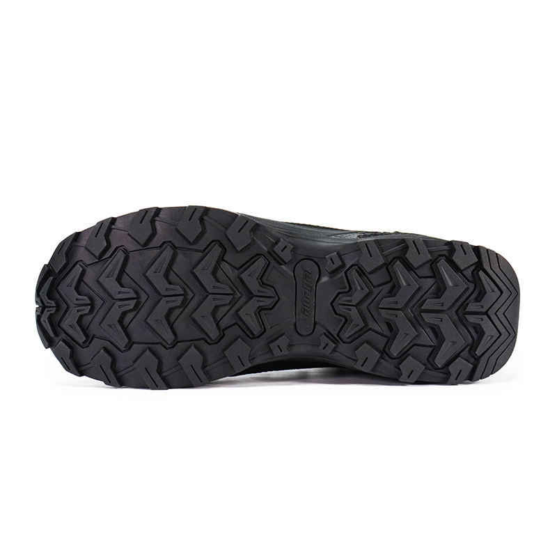 De op maat gemaakte rubberen buitenzool bijt zich in het terrein met serieuze grip, terwijl hij kilometer na kilometer stand houdt.