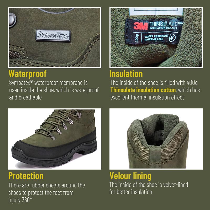 Deze Sympatex waterdichte isolatie Thinsulate jachtlaarzen zijn beschikbaar voor aanpassing in kleuren, materialen en details, met een minimale minimumprijs van 800 paar, ideaal voor merksamenwerkingen en groepsinkoop. En deze jachtlaarzen hebben de volgende voordelen: